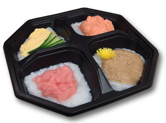 2009年度・岡崎養護学校の同窓会に流動寿司を届けました。 今回は、初期食と中期食。 写真は中期食です。